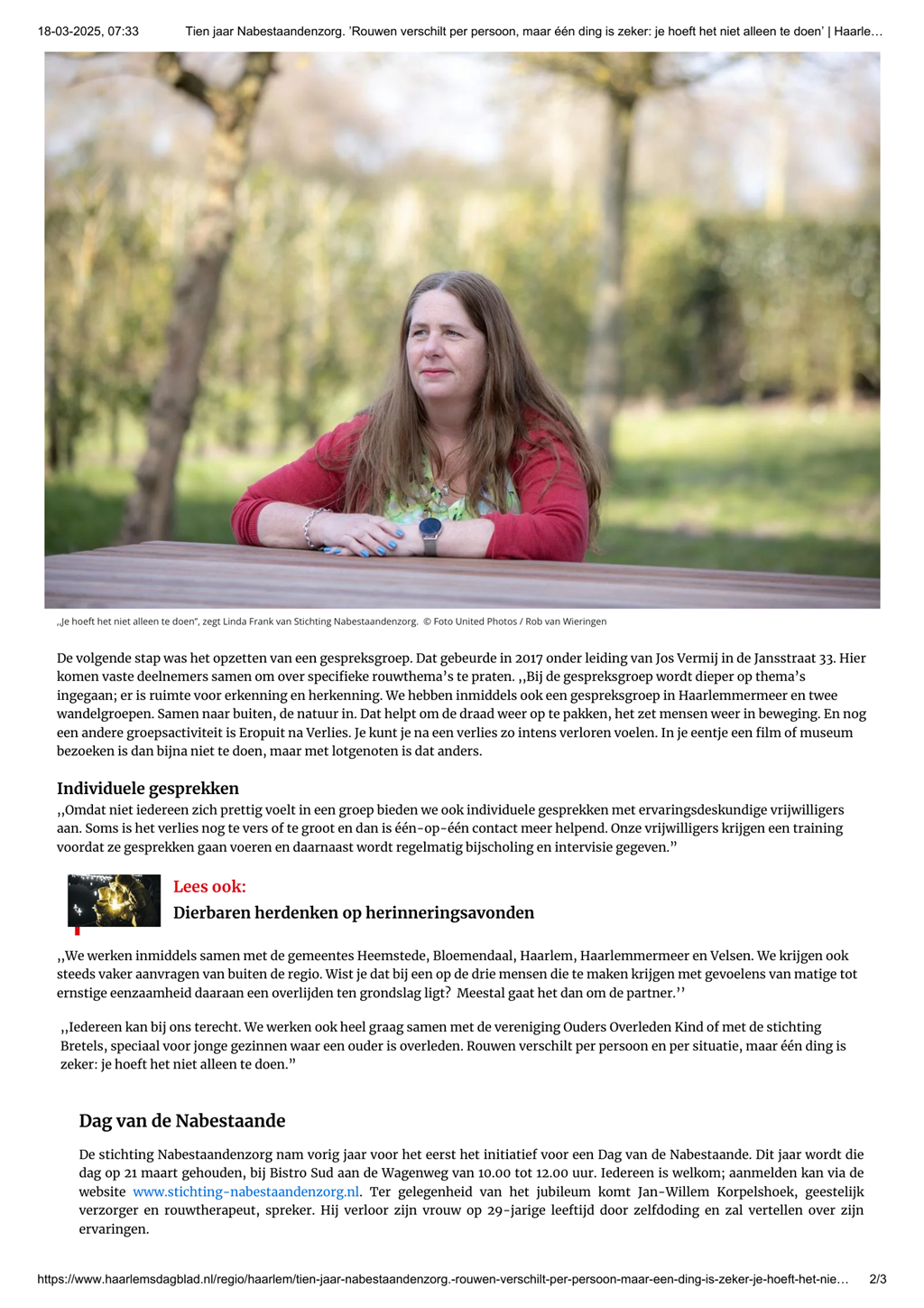 Tien jaar Nabestaandenzorg; ’Rouwen verschilt per persoon, maar één ding is zeker..